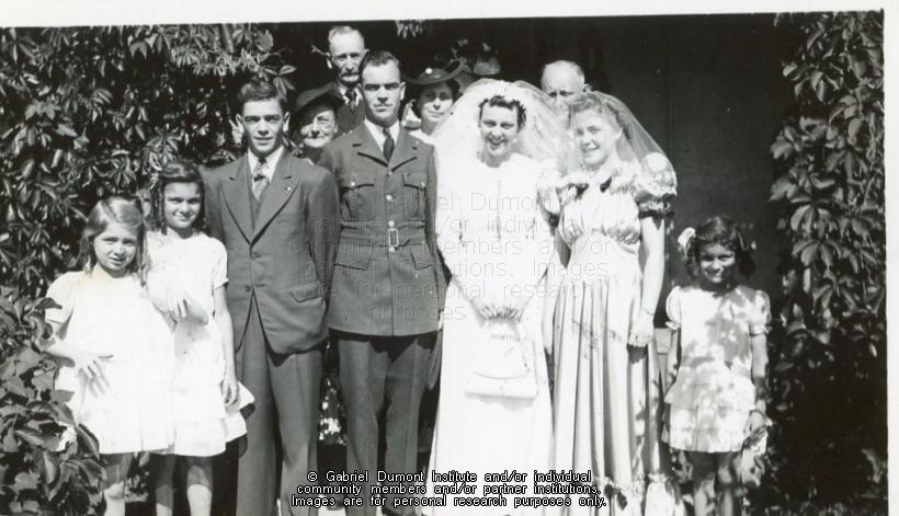 | Description: | Wedding photograph, including bridesmaid Cecile Doucette Baribeau. Others unidentified.