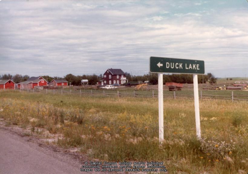 | Description: | Duck Lake highway sign with red house and farmyard in background. Photograph taken as part of the Canadian Inventory of Historic Buildings (CIHB) Volunteer survey conducted by the Architectural History Division, National Historic Parks and Sites Branch. Additional information about the buildings' age, location and owners (as of 1972), included on CIHB sheets held at Duck Lake Museum.