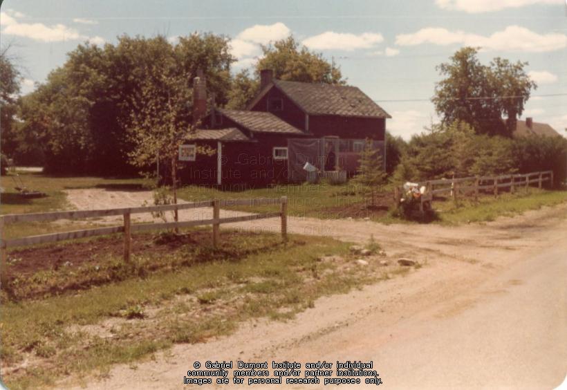 | Description: | House with red shingled roof, wooden fence, and driveway. Duck Lake.