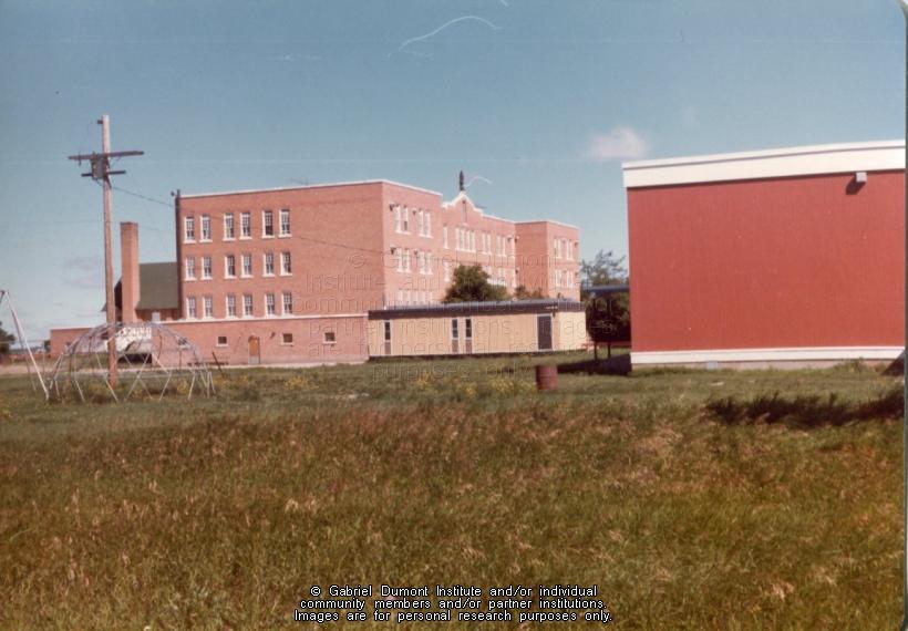 | Description: | St. Michael's (Duck Lake) Indian residential school with playround and other buildings in foreground. Duck Lake.