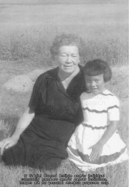 This is an image of Berthe Laderoute (1900-1967) and her great-niece, Cecile Azure (1950-?). Source: Brenda Boyer-Percell. This image must not be reproduced. The original source of this image is with Estelle Boyer. |