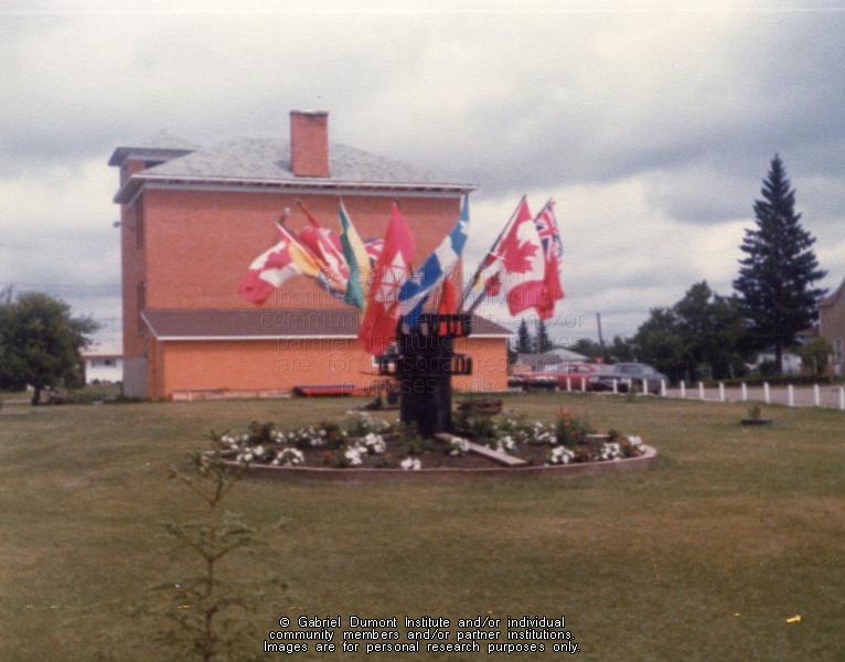 | Description: | Red brick museum building with flags out front. Duck Lake.