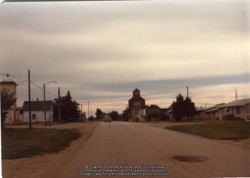 | Description: | View of road in Duck Lake town centre, with grain elevator in background.