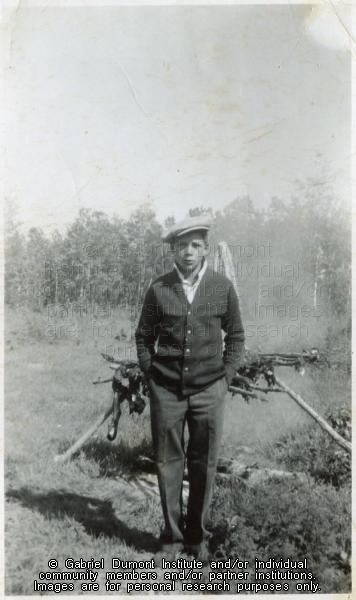 | Description: | Photograph of a young man standing in a clearing. This image has been graciously provided by the Duck Lake Regional Interpretive Centre for use on this website. It is available for research purposes only. The reproduction of this image in whole or in part is strictly prohibited without the permission of the copyright holder. |