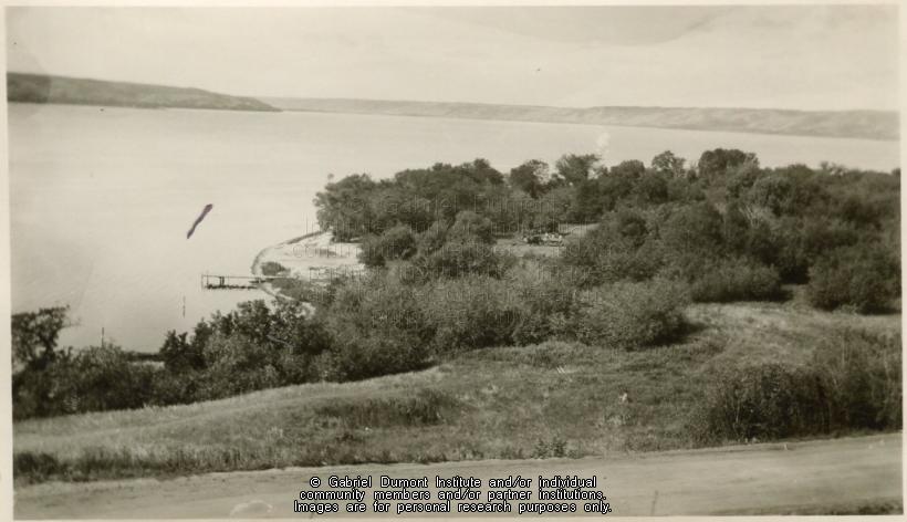| Description: | Landscape photograph of an unidentified body of water, with beach and wooded area in the foreground. This image has been graciously provided by the Duck Lake Regional Interpretive Centre for use on this website. It is available for research purposes only. The reproduction of this image in whole or in part is strictly prohibited without the permission of the copyright holder. |