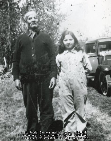 | Description: | Photograph of an unidentified man and girl in front of a car. This image has been graciously provided by the Duck Lake Regional Interpretive Centre for use on this website. It is available for research purposes only. The reproduction of this image in whole or in part is strictly prohibited without the permission of the copyright holder. |