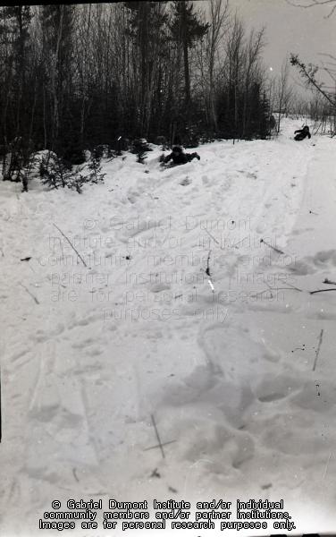 This is an image of one of the Kirkby children sledding down a hill. This is a series of photographs relating to the family of Alfred Lynden Kirkby (1910–1996), and include photographs of his wife, Jean Hall (Adam) Kirkby (1909–1956) and their children: Kathryn (Kay), Lynden, Marion, and Wendy. Other than the photograph of himself, these photographs were all taken by Alfred L. Kirkby. |